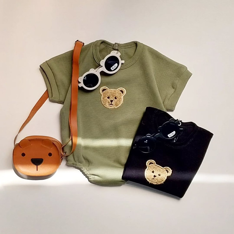 بادی تدی کیوت تو دورنگ مختلف براتون شارژ شد. جنسشون بیسکوییته ، قسمت تدیش گلدوزی شدس. از پهنا کشسانی داره، قسمت فاقشم دکمه خوره و برای تعویض پوشک نی نی خیلی راحتین، و همچنین پشت گردن هم یدونه دکمه داره و راحت سر میشه . تنخورش محشرررره.