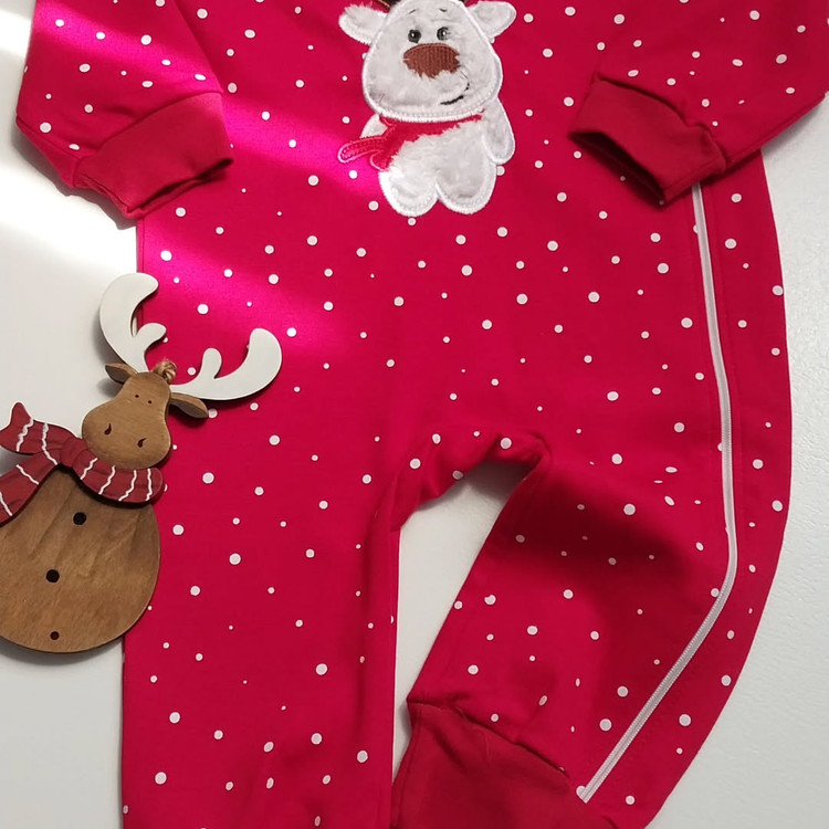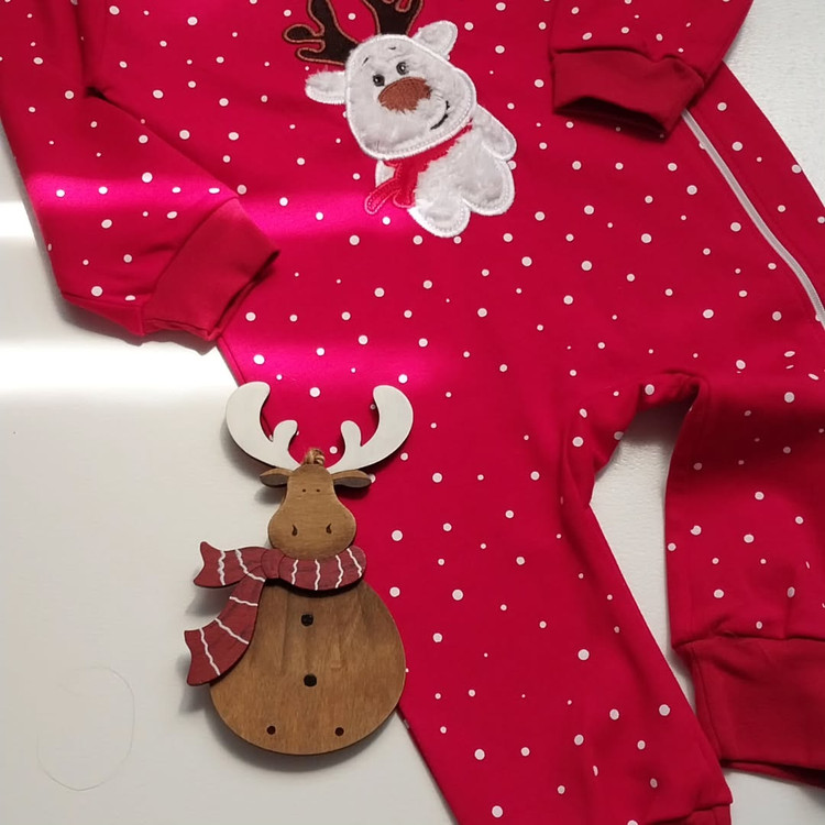 بنظرم قشنگترین سرهمی کریسمسیِ، قبول داری؟ از قسمت جلوی یقه تا مچ پای سرهمی کامل زیپ کار شده و خیلی راحت میتونین سرهمی رو تن دلبندتون کنینحافظ زیپ هم داره.) قسمت عروسکیش مطابق اسلاید دوم پشمالوعه. مچ دست ، مچ پا کشبافت کار شده.