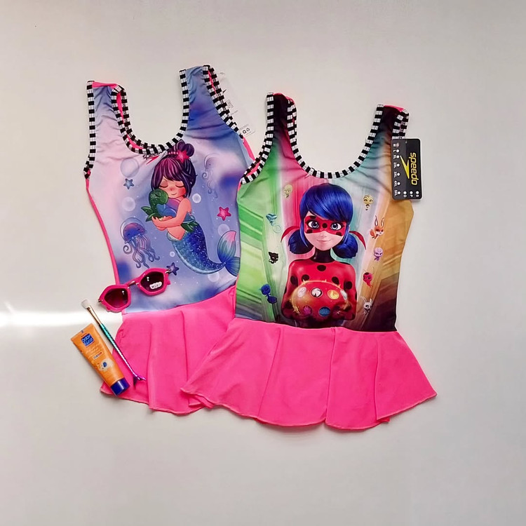 مایو دخترانه دامن‌دار سرخابی رنگ