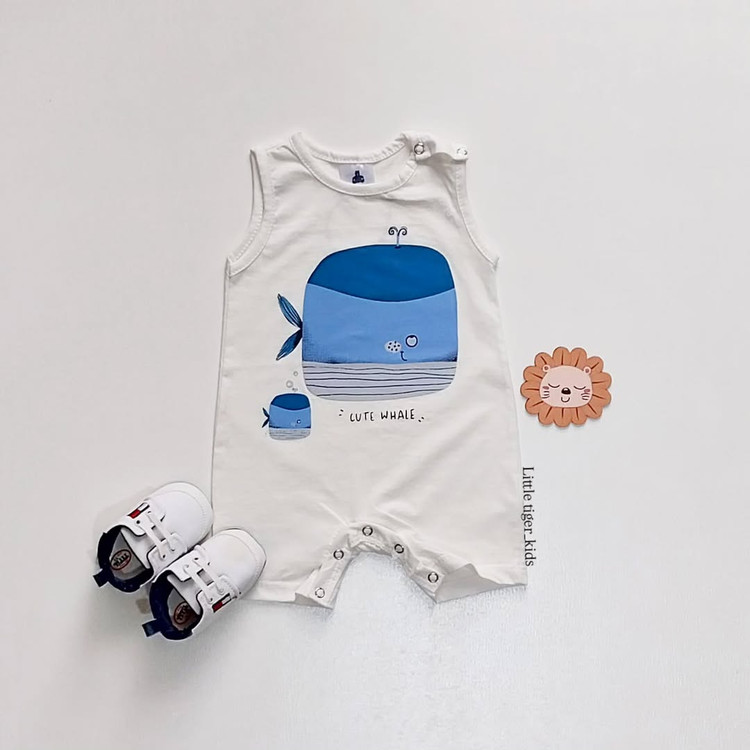 رامپر نهنگ مهربون مثل دوستای دیگهش خاص و کیوته نخی و خنکه، کنار یقه دکمه داره و راحت سر میشه. قسمت فاقشم دکمه خوره و برای تعویض پوشک نی نی خیلی راحتین. چاپ جلوی رامپر پلاستیزولِ با شستشو خراب نمیشه. اندازه هاشونو این پایین برات مینویسم چک کن