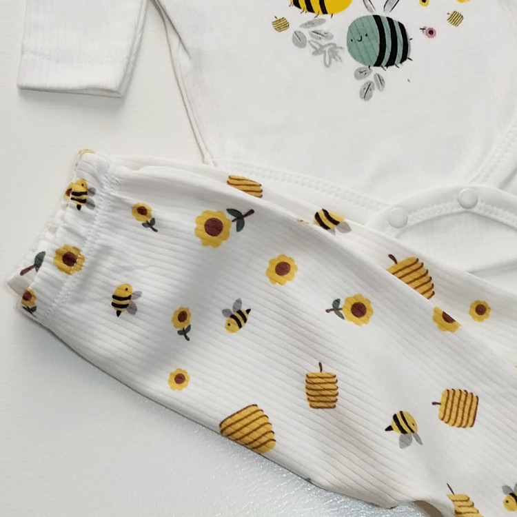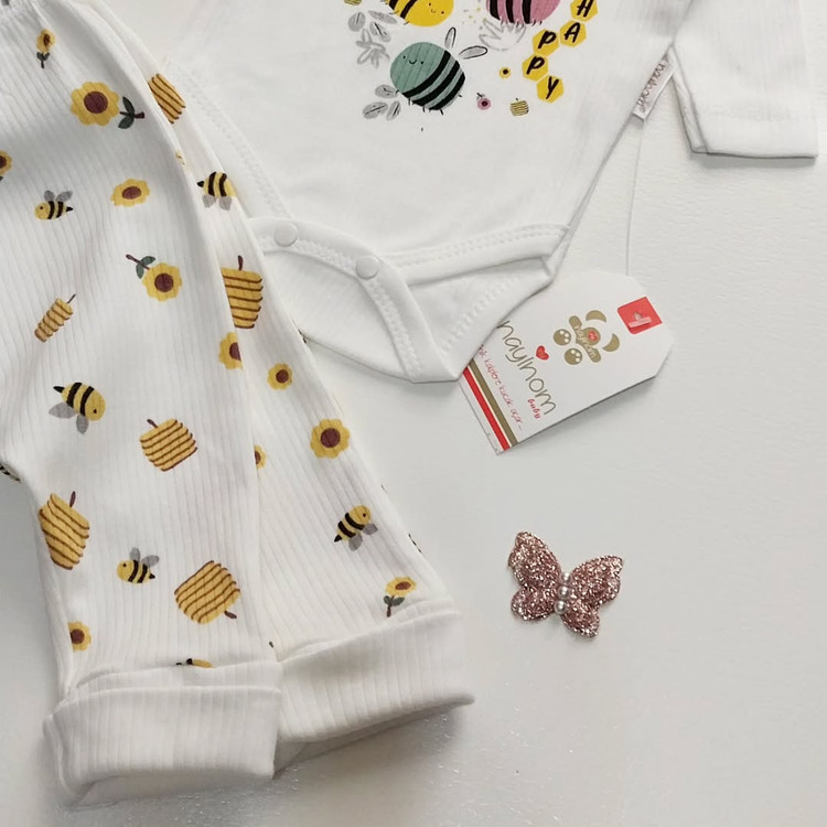 بادی شلوار زنبورای کیوت و کندو عسل جنسشون نخ پنبه لطیفه و کیفیت و دوختشونم عالیه. خوراکه فصل بهاره محصول ترکیهس وقت بزن خودت جزییاتشو از نزدیک ببین. اندازههاشو این پایین برات مینویسم