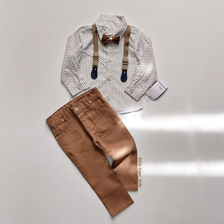 از کیفیتشون هرچی بگم کم گفتم . شامل پیراهن نخی نازک و لطیف، ساسبند قابل تنظیم، پاپیون قابل تنظیم و شلوار کتان. ورق بزن جزئیات قشنگشو ببین. پاپیونش بند تنظیم داره و اصلا دور گردن کوچولوتونو اذیت نمیکنه. کمر شلوارش مثل اسلاید ششم قابل تنظیمه. پیراهنش بهارهس و مثل برگ گل نازک و لطیفه. ساسبند خفنشم قابل تنظیمه. خلاصه یه ستِ همه چی تموم واسه گل پسراس.