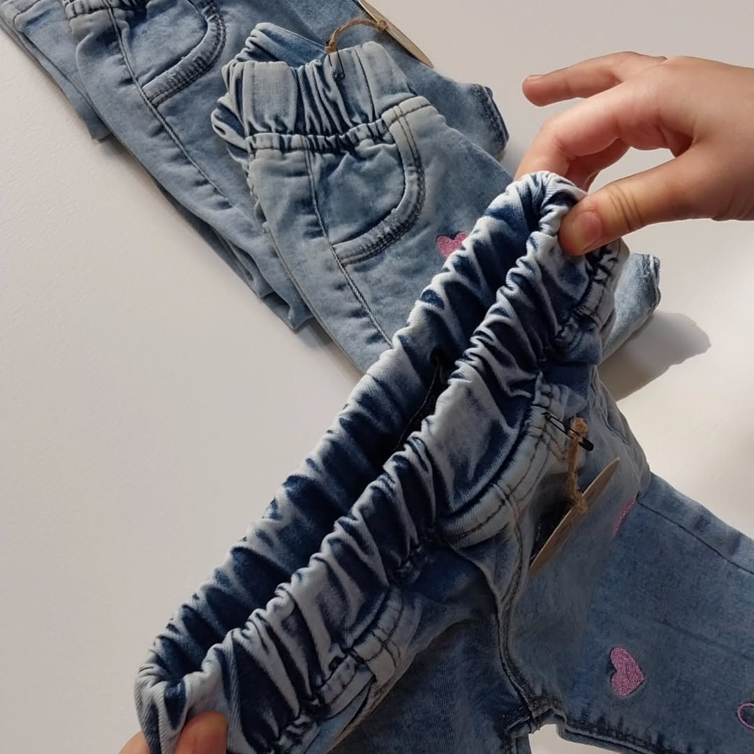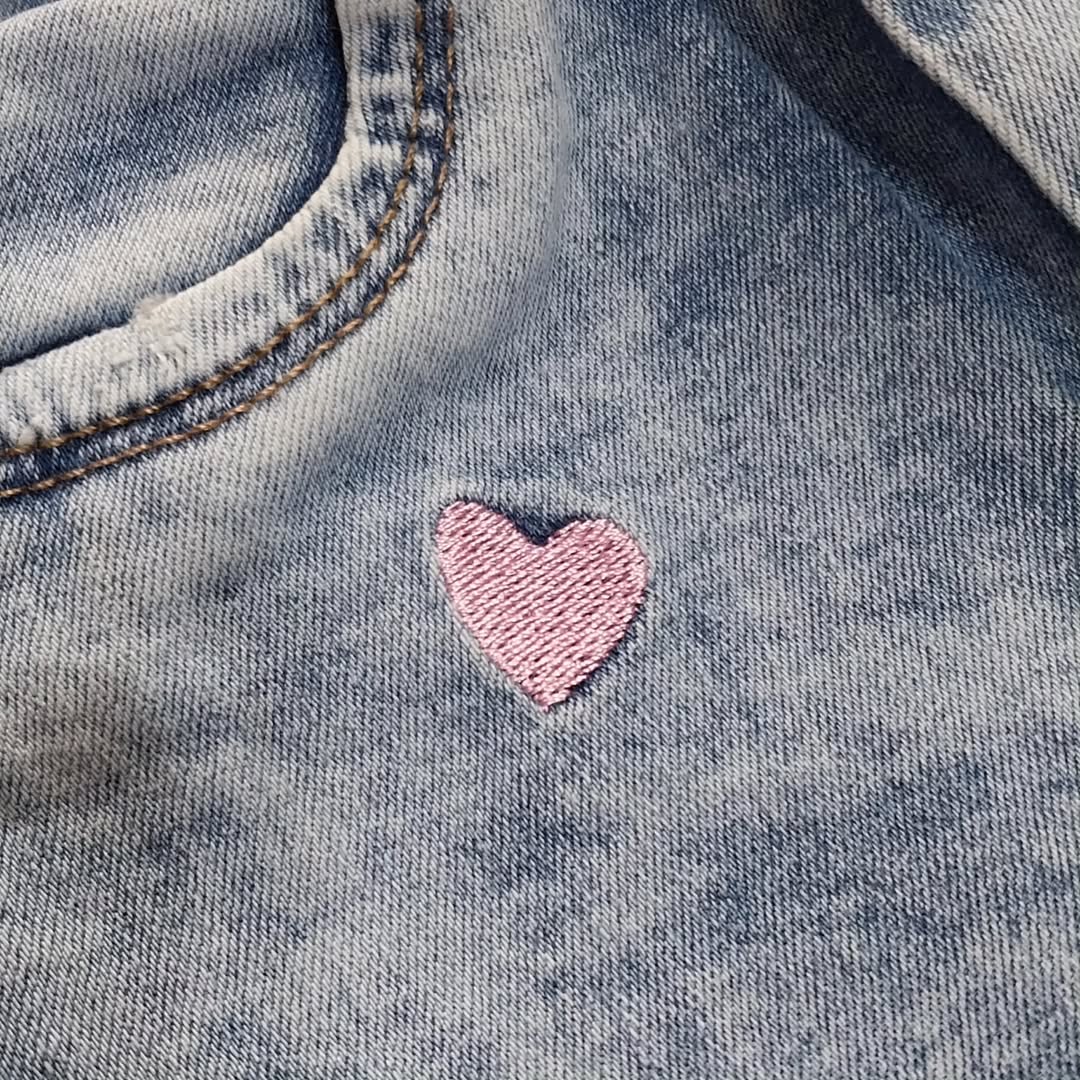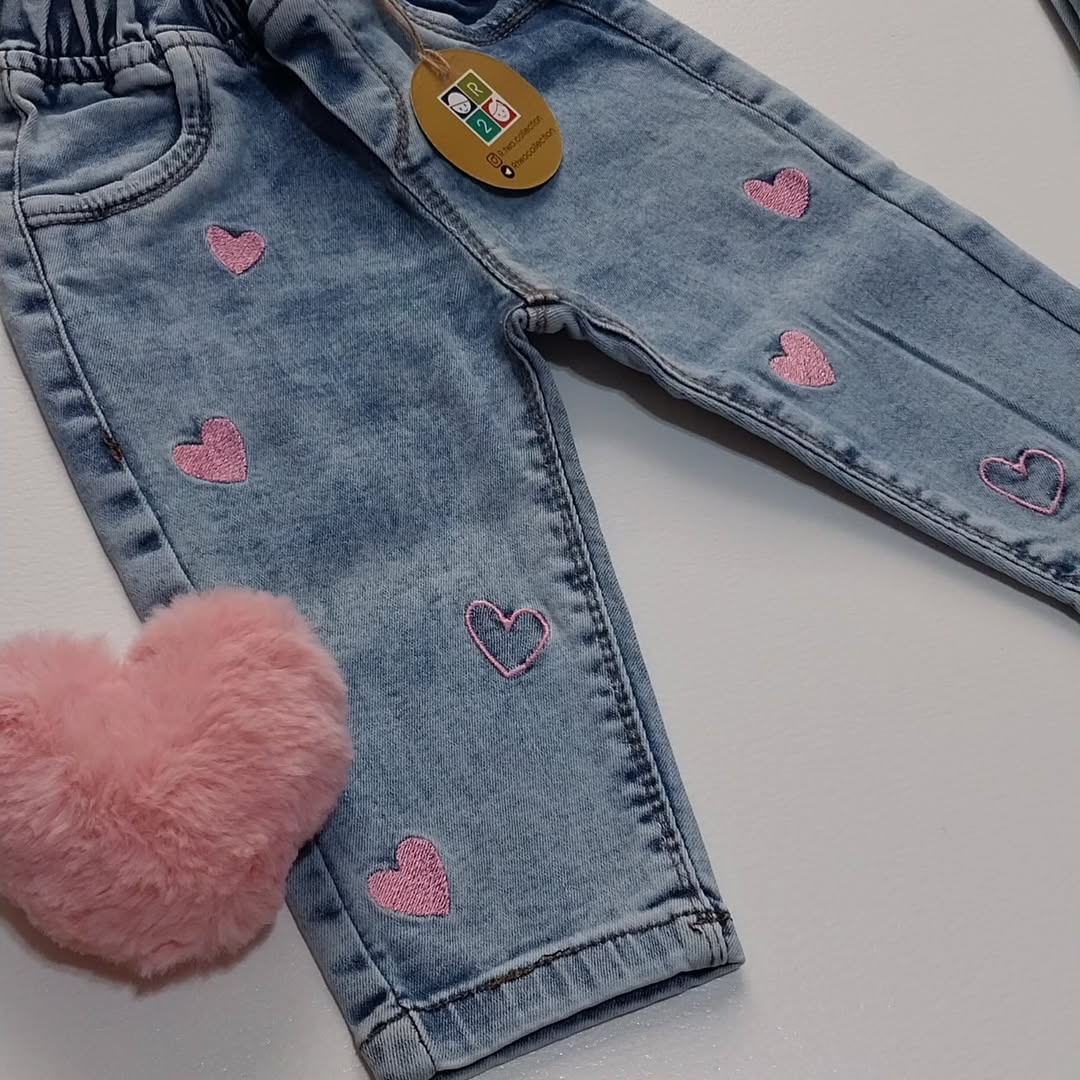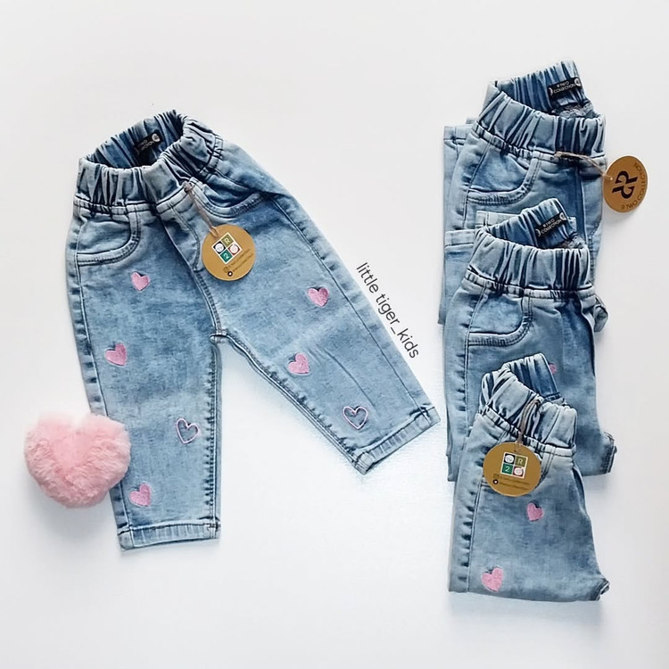 شلوار جین دخترونه با گلدوزی قلبی از کیفیتش هرچی بگم کم گفتم . کمر شلوار کشیِ و راحت تن میشه.