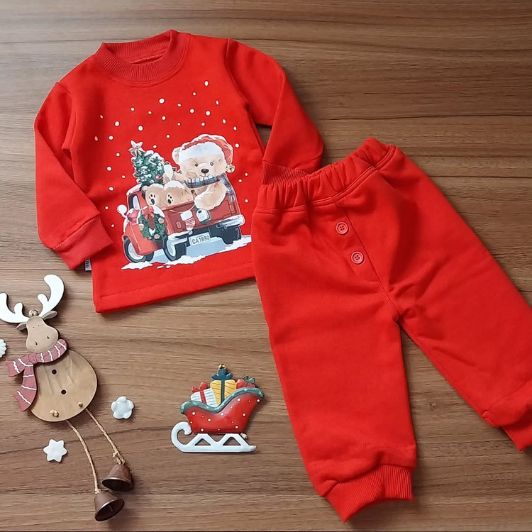 ست بلوز و شلوار کریسمسی/یلدایی تو کرکی تدی دستتون برسه از کیفیت و تنخورش کیییف میکنید جنسش دورس پنبه لاکرا دار داخل کرکیه. مناسب ه تا ۲ ساله. بهترین گزینه برای ست خواهر برادریه.