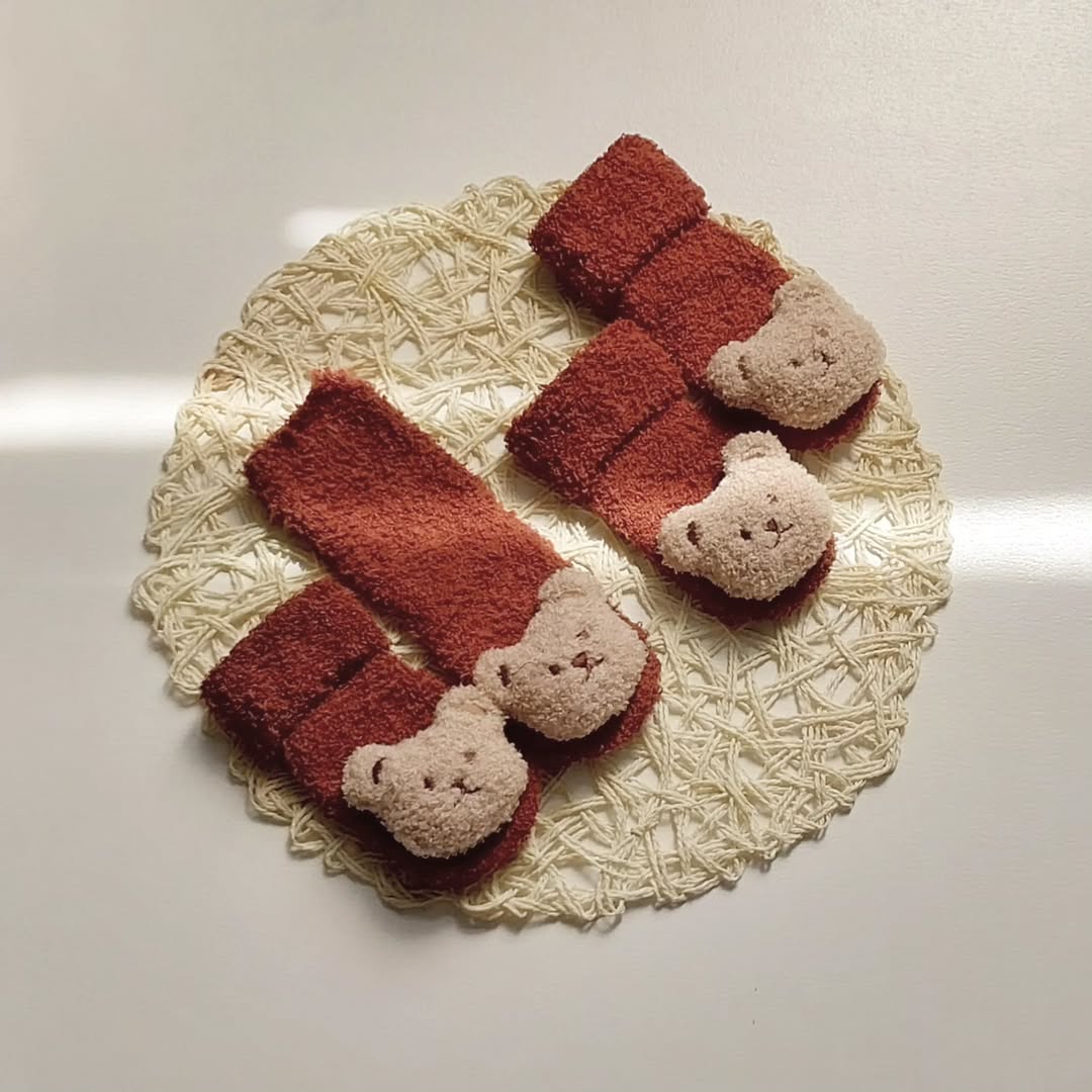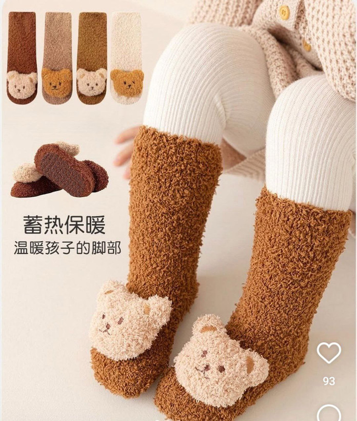 جوراب حولهای تدی وارداتی ساق بلند مناسب فصل سرد کفی جوراب ۱۰ سانت در حالت بدون کششه، ولی تا ۱۴ سانت کِش میاد بلندی ساقش هم ۱۲ سانته. کف جوراب اِستپ داره و نمیخواد نگران سُر خوردن دلبندتون باشین.