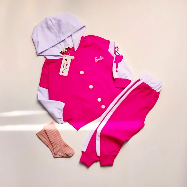 سویشرت شلوار تو کرکی باربی سرخابی
