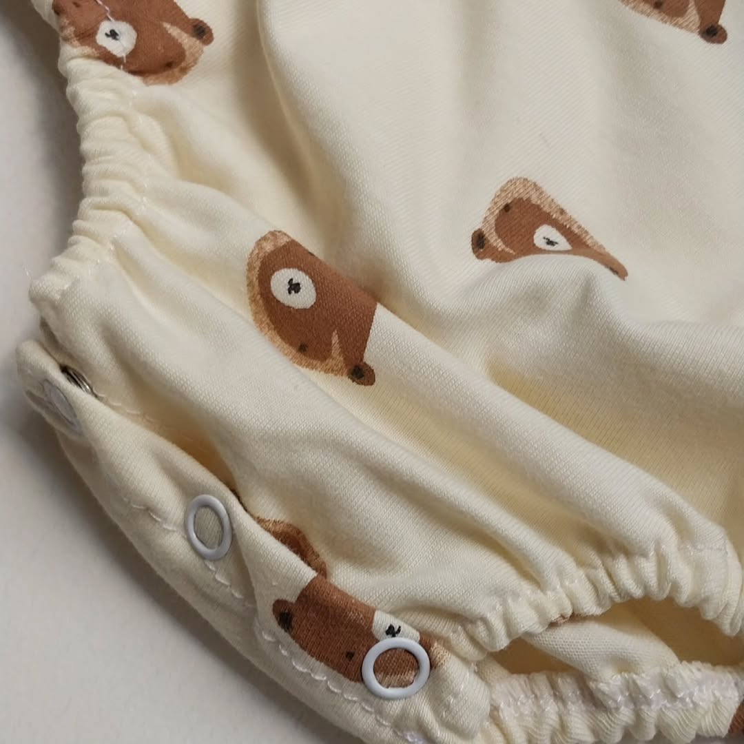 یعنی کسی هست تدی دوست نداشته باشه؟ این بادی کیوت جنسش نخ پنبه ، قسمت تدیش بافت خود پارچهس. قسمت فاقش دکمه خوره و برای تعویض پوشک نی نی خیلی راحتین، و همچنین پشت گردن هم یدونه دکمه داره و راحت سر میشه. رنگششیریِ