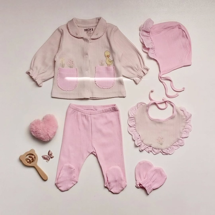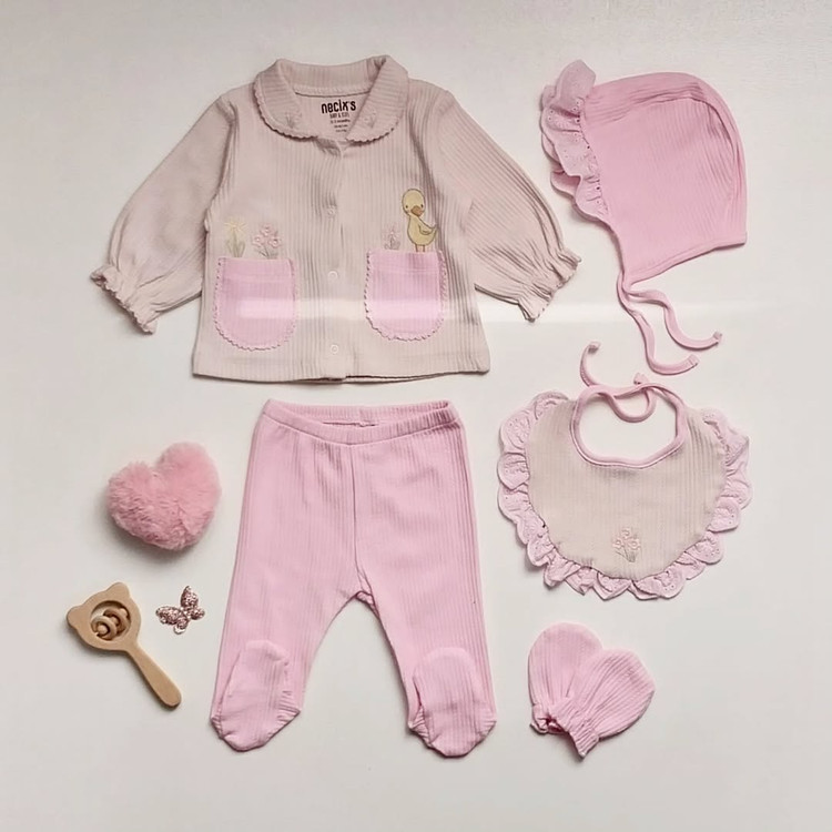 شامل کلاه ، پیشبند ، دستکش ، مانتویی و شلوار جورابداره. نرم و لطیفن و مناسب پوست حساس نوزادن. محصول ترکیهن از برند خفن و معرف نِجیکس هستن.