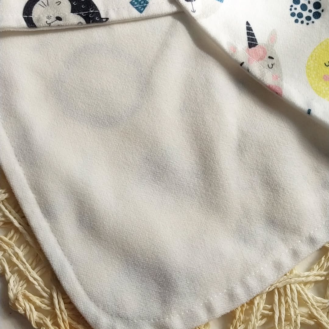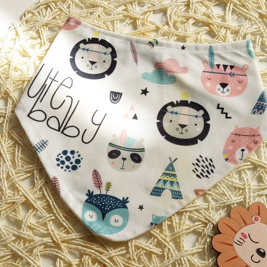 دستمال گردن/پیشبند کیوت تقدیم به نینیای ببرکوچولو با دکمه تق تقی بسته میشه. چاپشم بافت خود پارچهس با کیفیت و نمکه. 😍❤️