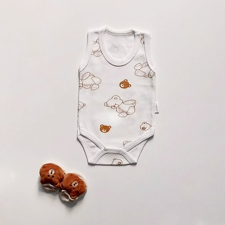 بادی رکابی ترک طرح کیوت و پر طرفدار تدی طرحش بافتِ خود پارچس ، نرم و لطیفهق بزن، جزئیات قشنگشو ببین سایزبندیش نوزادی تا ۹ ماهه، از پهنا کشسانی دارن. اندازههاشونو حتما چک کنین