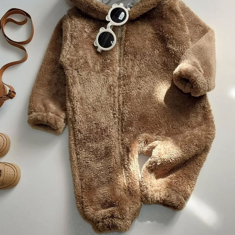 سرهمی پاییز/زمستونی تدی پشمالو گرم و نرم شکلاتی رنگ