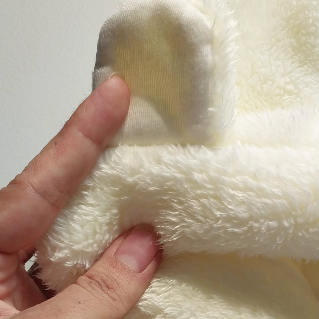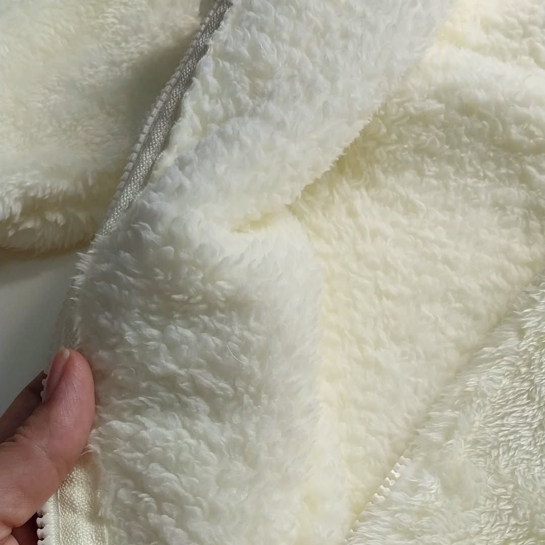 این سرهمی گرم و نرم شیری رنگ با کیفیت بسیار عالی طراحی شده است. دارای زیپ سرتاسری برای راحتی در پوشیدن و کشدوزی در سر آستین و مچ پا است تا از ورود سرما جلوگیری کند. بافت ضخیم و متراکمی دارد که مانند پتو گرم و نرم است.
