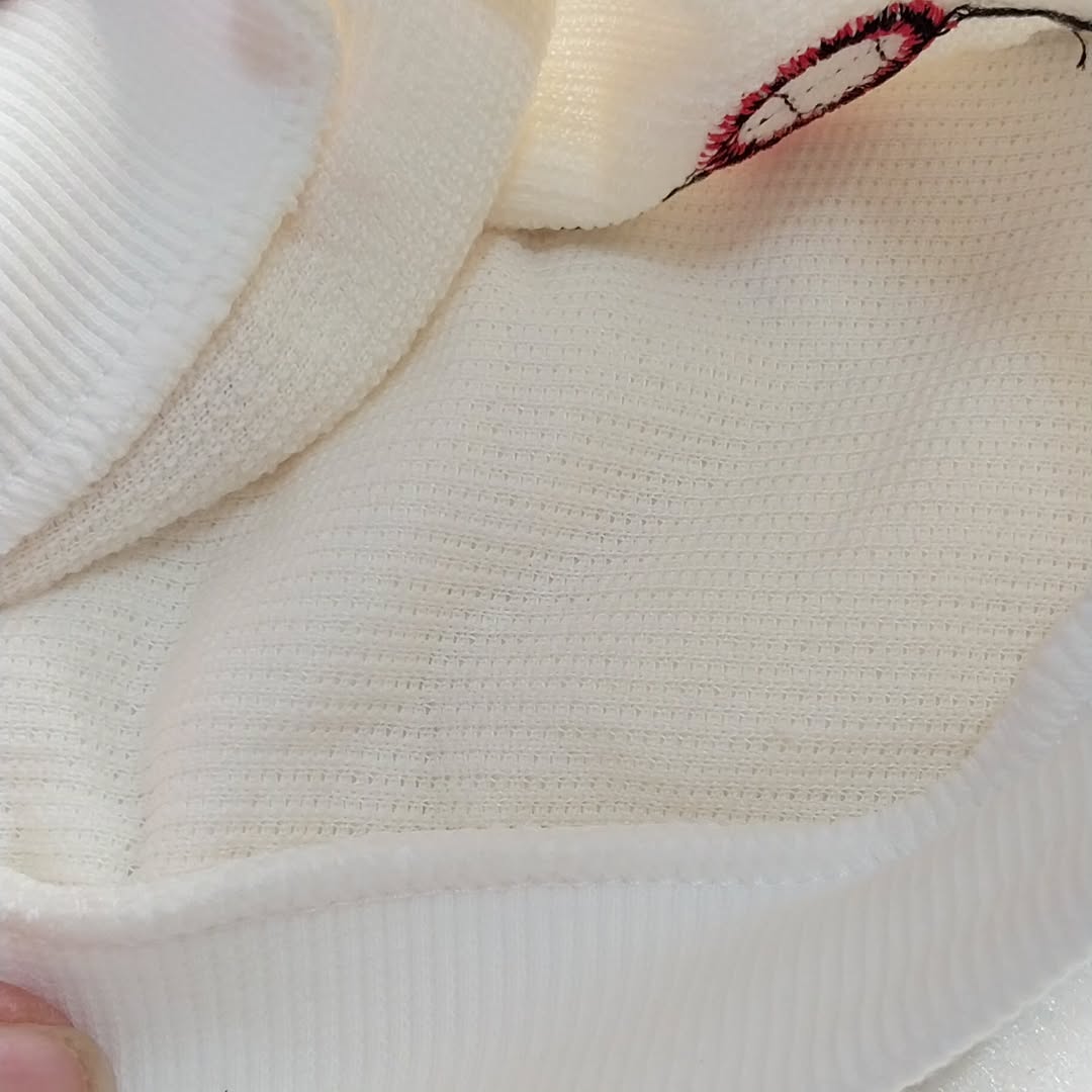 دور یقه کشبافت داره و راحت سر میشه. قسمت مچ آستین ، پایین لباس ، مچ پا هم کشبافت کارشده.