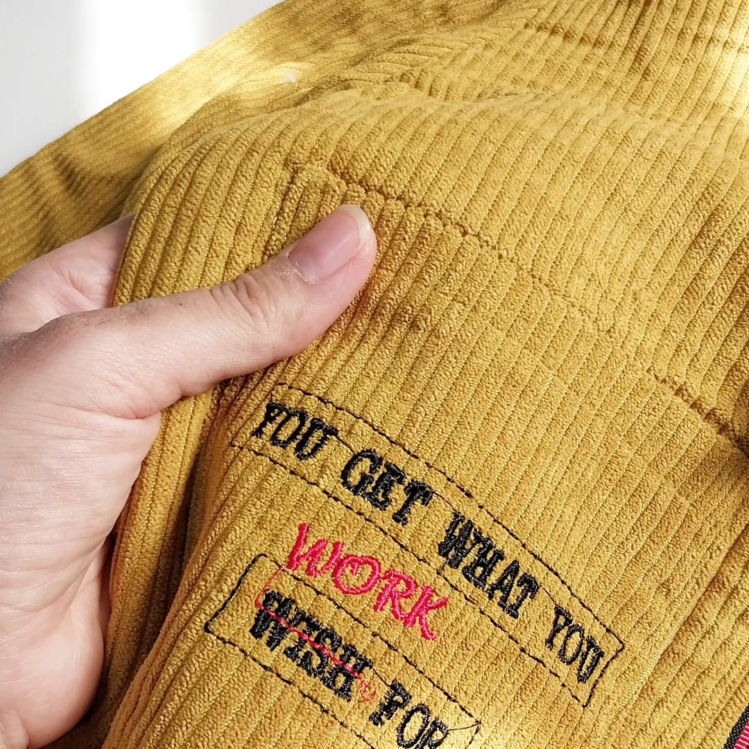 قسمتِ پشت کاپشن گلدوزی کار شده که تو اسلاید چهارم میتونین ببینین.