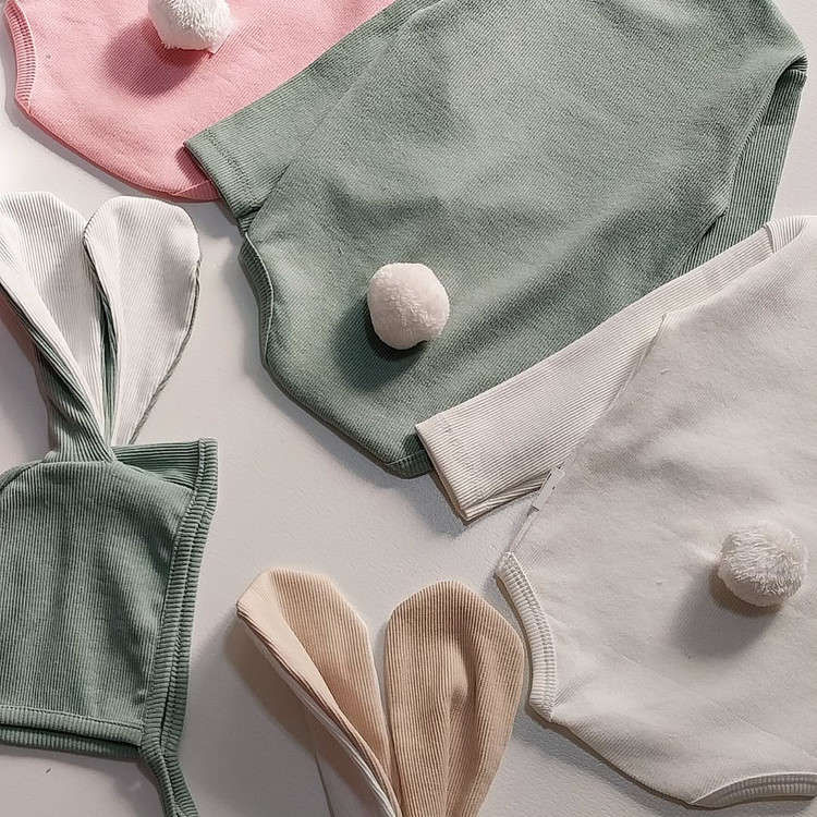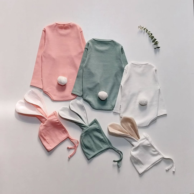 ست دو تیکه شامل بادی و کلاه با طراحی خرگوشی مناسب برای نوزادان تا یک سالگی. این ست در سه رنگ شیری، صورتی و سبز موجود است و از کشسانی خوبی برخوردار است.