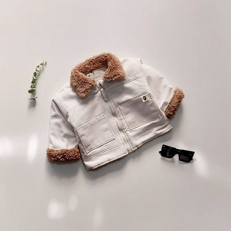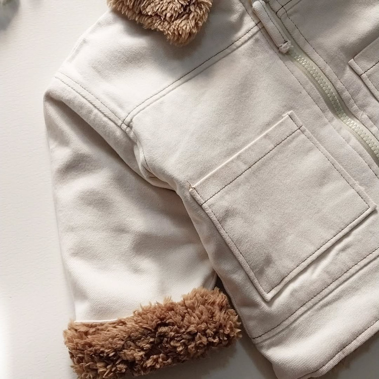 کاپشن کتان داخل خز استخوانی رنگ تقدیم به شازده کوچولوهای ببر کوچولو ✨