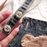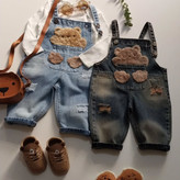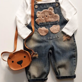 بیلر جین نوزادی و بچه گانه عروسکی طرح تدی رنگ آبی کثیف شور