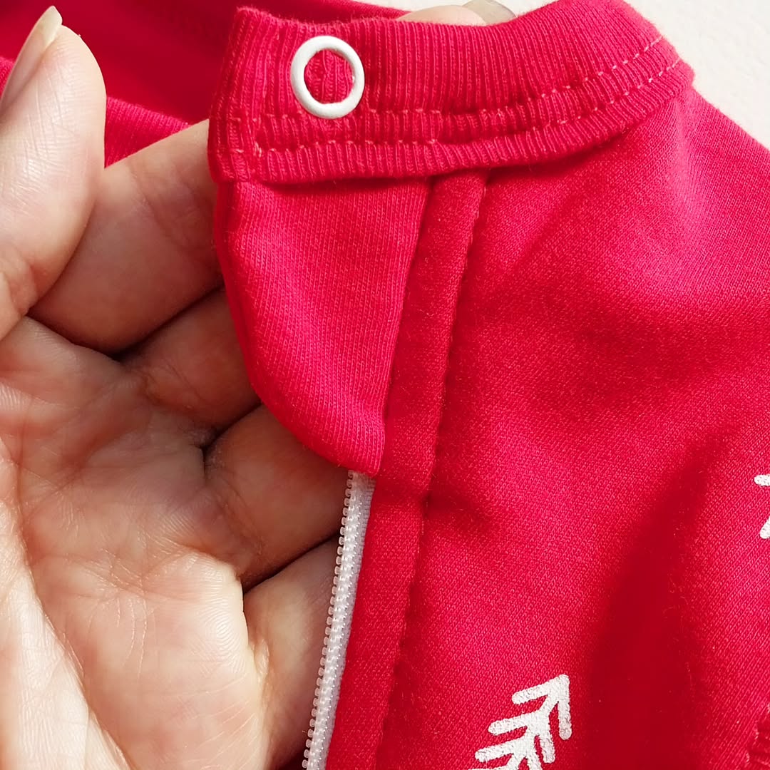 از قسمت جلوی یقه تا مچ پا کامل زیپ کار شده و خیلی راحت میتونین سرهمی رو تن دلبندتون کنین.(محافظ زیپ هم داره.)