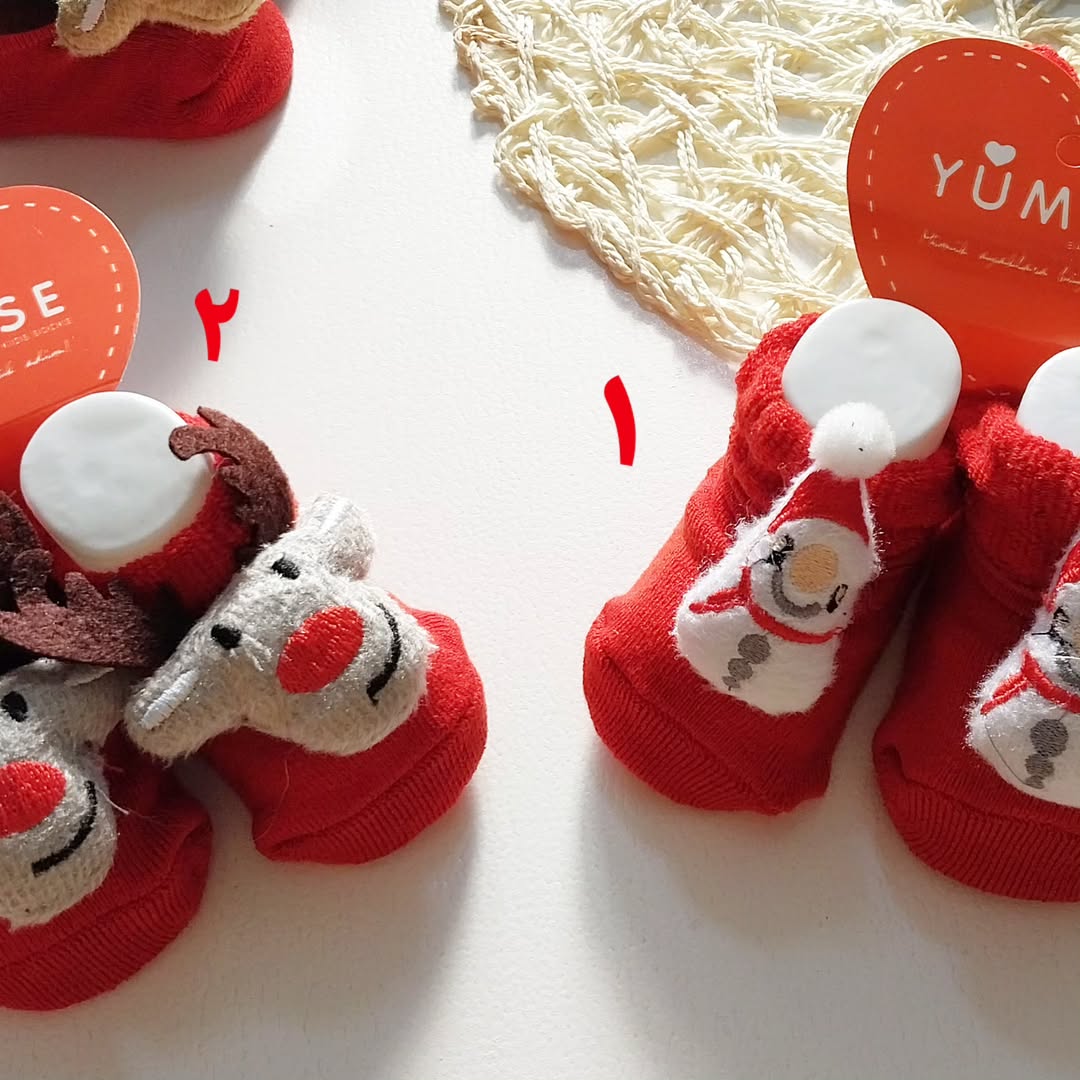 جمعی از کیوتترین جورابای کریسمسی با طرحهای مختلف کفی جوراب استُپ داره. مناسب نوزادی تا حدود ۱.۵ ساله.