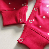 از قسمت جلوی یقه تا مچ پا کامل دکمه کار شده و خیلی راحت میتونین سرهمی رو تن دلبندتون کنین.(فاق هم تماما دکمخوره و تعویض پوشک رو راحت میکنه.)
