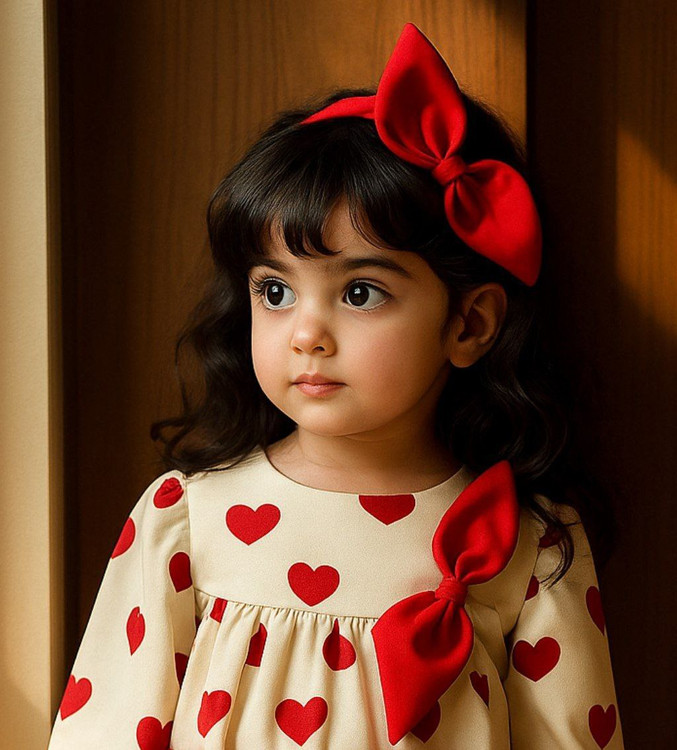 پیراهن قلبی دلبرونه بهمراه تل ست ، یلدایی مناسب یک و نیم الی ۶-۷سال