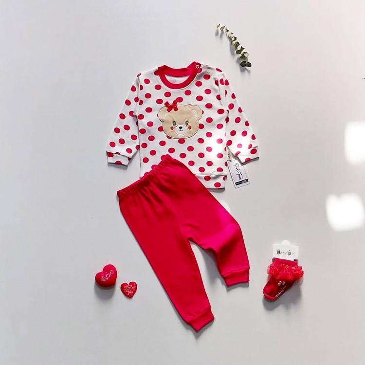 ست دو تیکه شامل بلوز و شلوار خرسی قرمز ترک 🇹🇷❤️