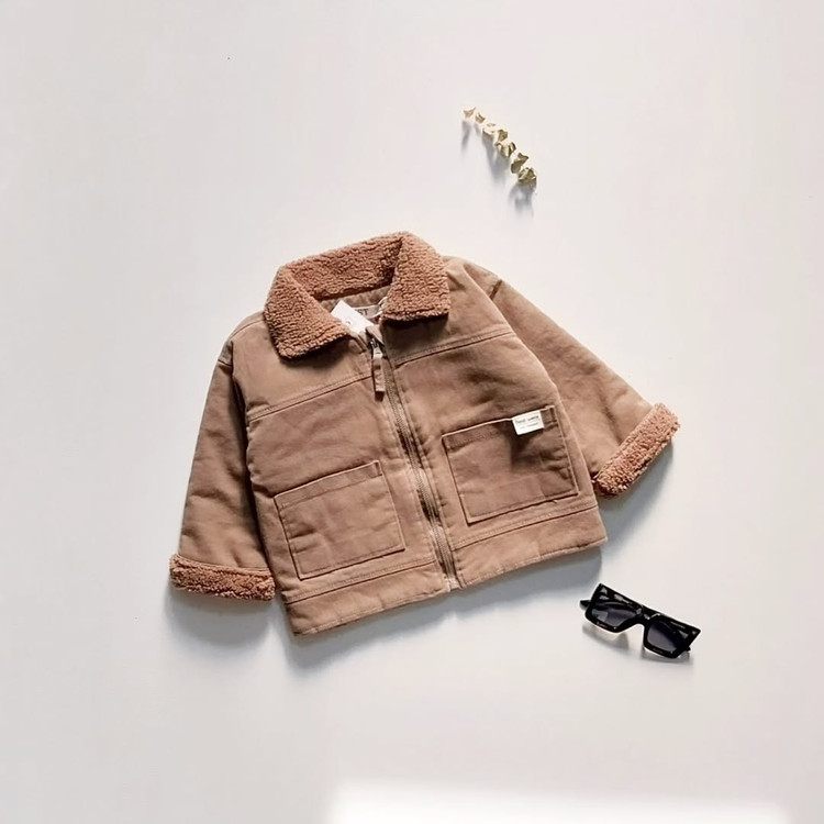 کاپشن بوفالو با خز شکلاتی رنگ سایز بچگانه