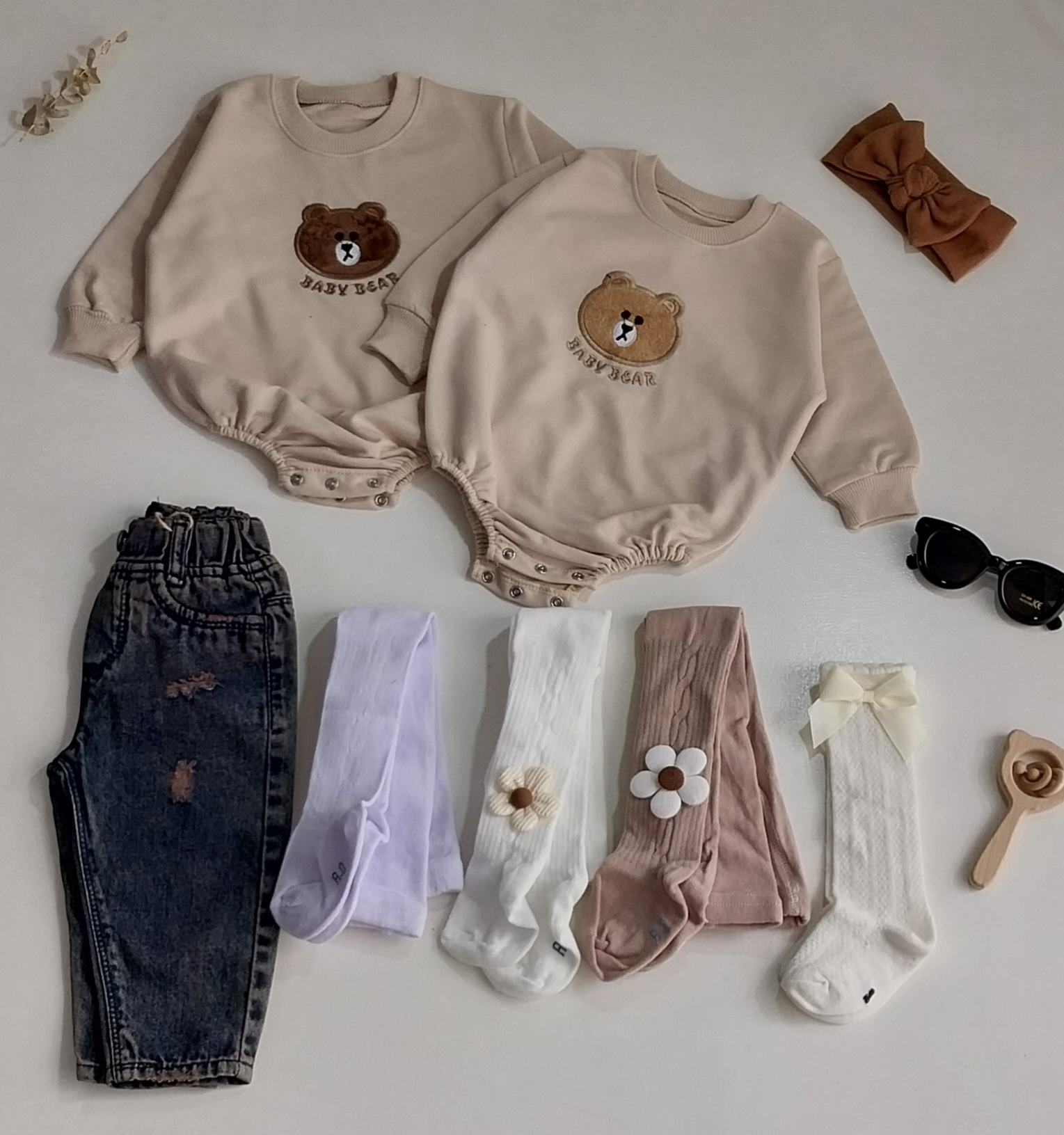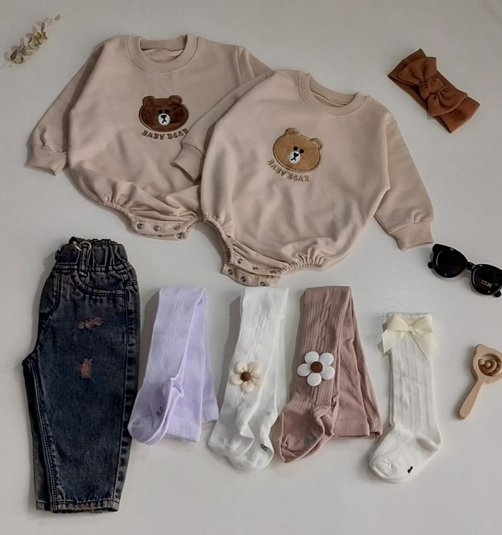بادی کرم رنگ با تدی شکلاتی سایز یک