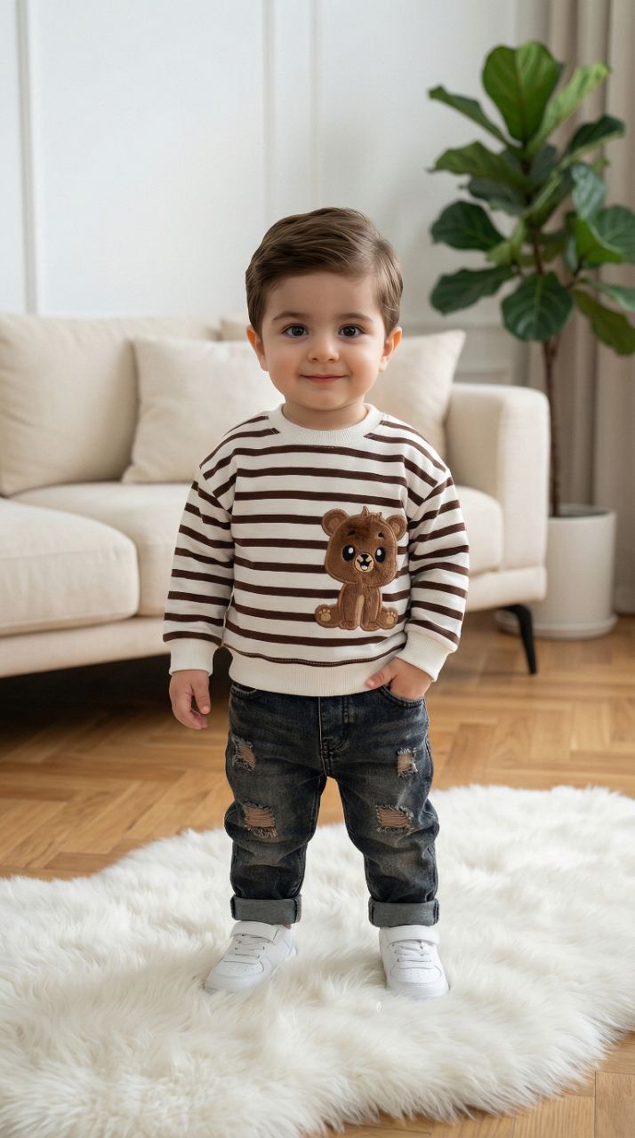 دور یقه کشبافت نرم کار شده و راحت سر میشه ، دور مچ آستین و پایین لباس هم کشبافت نرم بکار رفته.
