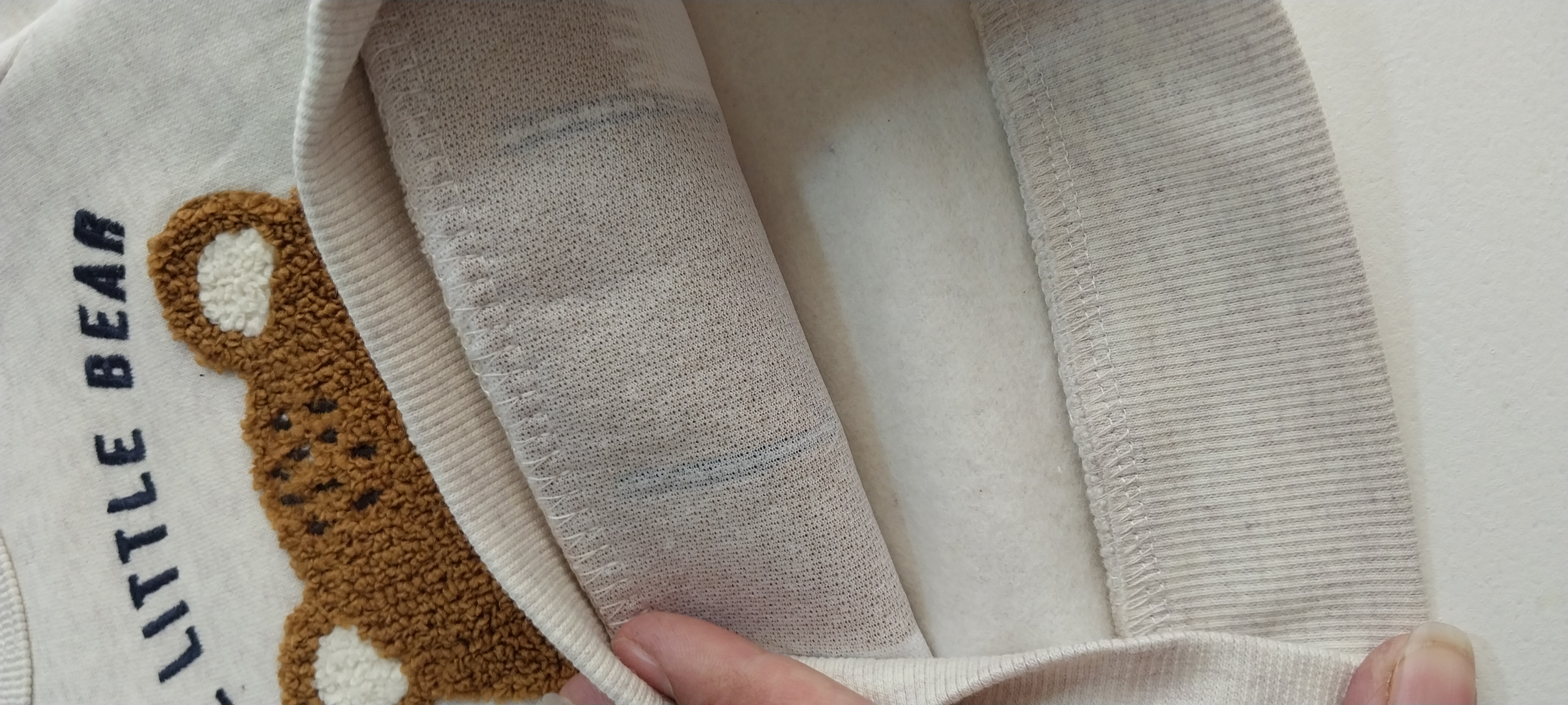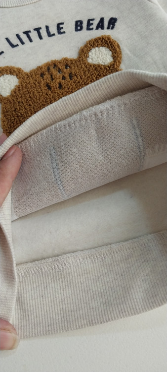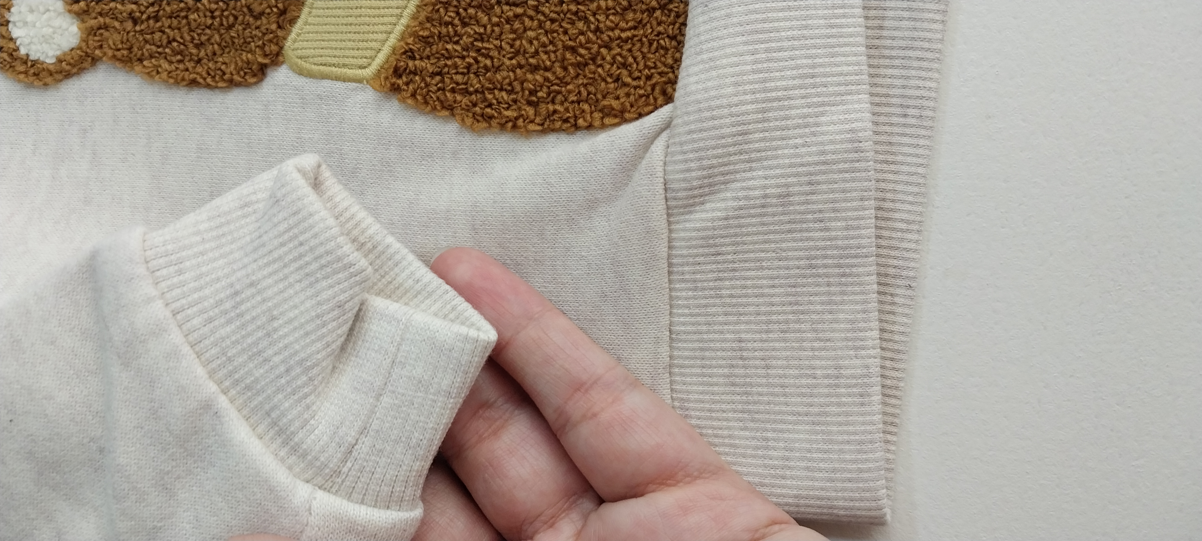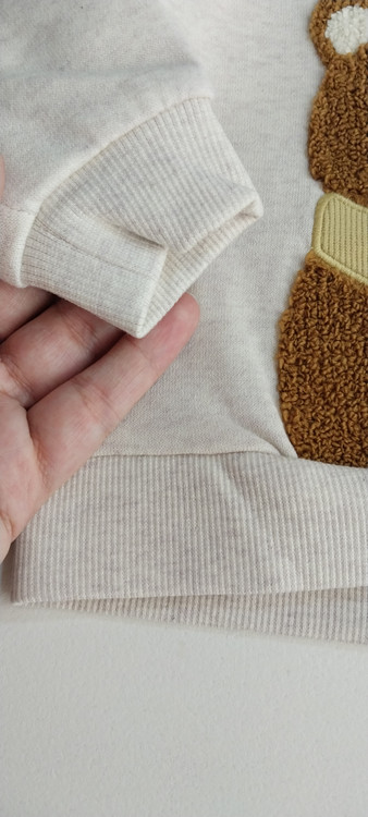 دور یقه ، قسمت مچ آستین و پایین لباس هم کشبافت کارشده.