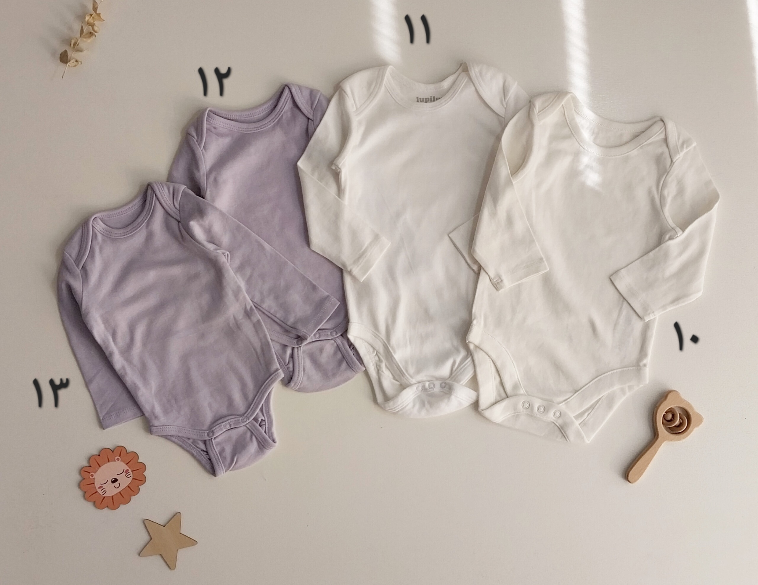شماره یازده سفید از برند لوپیلو : سایز ۶-۱۲ ماه پهنا ۲۶ سانت / قد از سرشانه تا فاق ۴۵