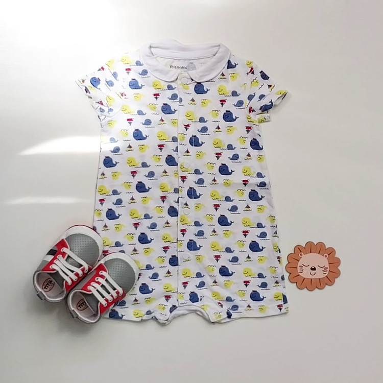از قسمت جلو گردن تا پایین و قسمت فاق تماما دکمه میخوره. خیلی نرم و لطیفه ، طرحشم اسپرته.