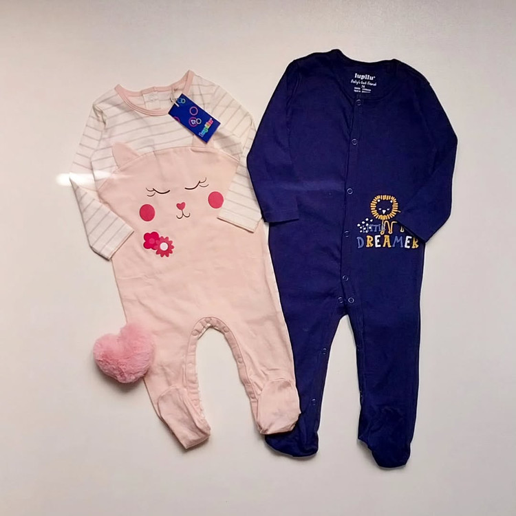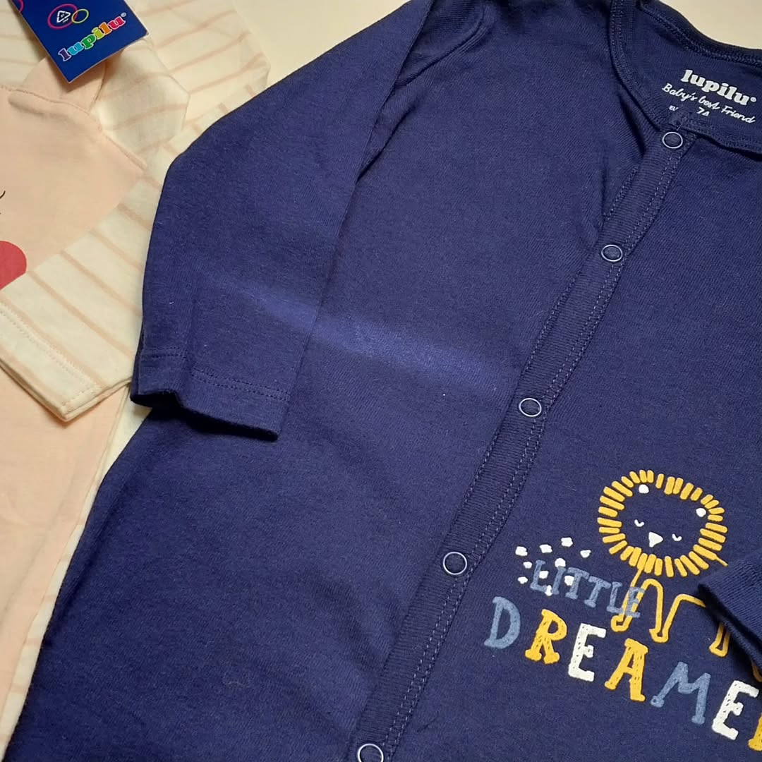 سرهمی سرمهای رنگ تماما از جلوی گردن تا مچ پا دکمه خوره. سرهمی صورتی قسمت پشت گردن دکمه خوره و راحت سر میشه و همچنین قسمت فاق کاملا دکمه خوره و موقع تعویض پوشک راحتین.